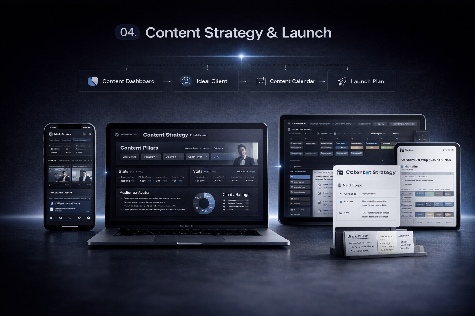 We set up your offer, positioning, content and lead funnel so qualified prospects start reaching out to you, instead of you chasing clients.